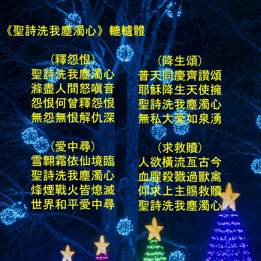 《聖詩洗我塵濁心》轆轤體 ~ 陳瑞文 ’71 Posted on December 24, 2025 by jmah 從 Hildegard von Bingen 的聖詩得到靈感,並引用《法句經》部分內容,寫了以下詩篇,與您分享,並祝聖誕快樂,心靈純潔,平安吉祥。